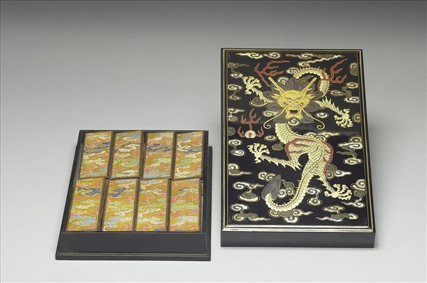 黑漆描金龍紋盒