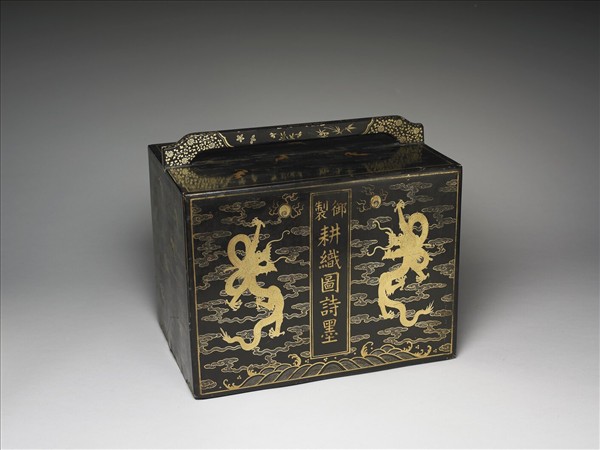 黑漆描金龍紋「御製耕織圖詩墨」提匣