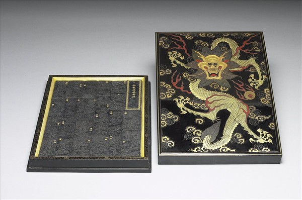 黑漆描金龍紋盒