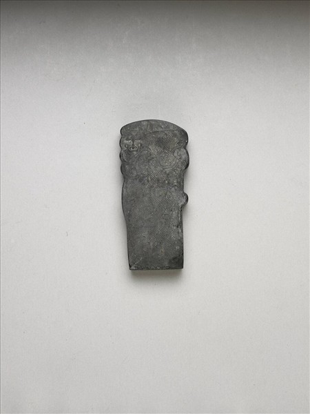 圓首碑碣形墨。墨之兩面均以卍字紋為地,上有一龍,惟龍身簡省離散一如雲狀紋,墨面下方模印蕉葉為飾。墨側有「乾隆丁巳年製」(1737)、「御墨」填金款識,並模鈐「雜佩」二字。此墨與其他五十一墨同儲於兩屜一匣中。