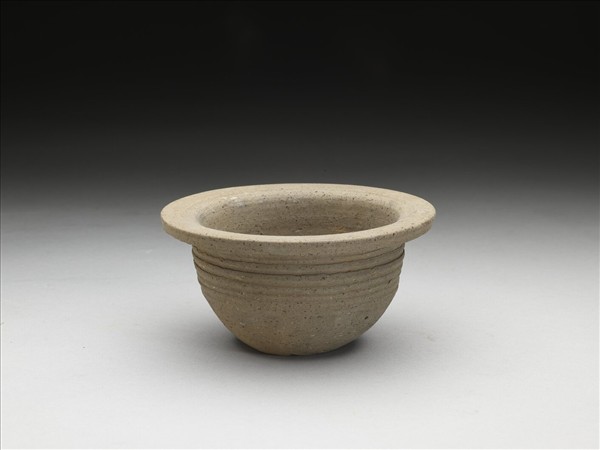 上為折唇,圓口,平底有孔。全器平素。下為釜形。