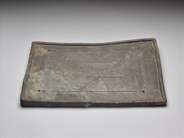 原器已殘,今已修補。案面不平整,一端略為上揚,作長方形,邊緣有凸稜,作為邊框。案面四角各有一圓孔,以陰線刻連成方框,中央刻繪魚紋乙尾,外亦有方框。遼陽出土。