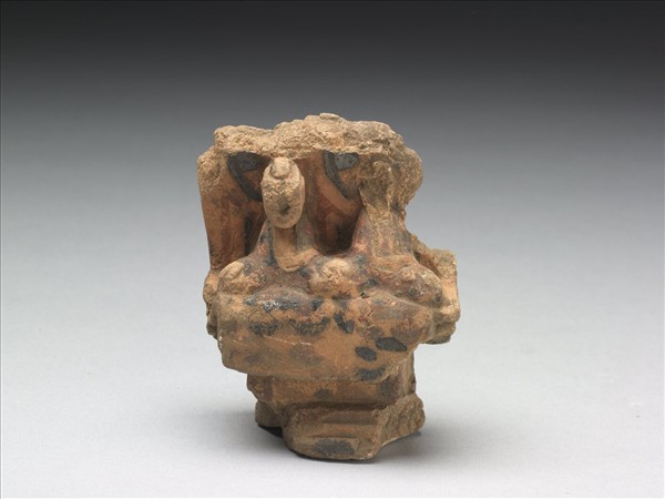 二佛並坐於方形束腰台座上,坐佛臉長圓,微帶笑意,削肩,身披大衣,右側衣緣翻折搭在左手上,雙手置於結踟趺坐的雙膝上,雙膝外張,清秀中帶著稚氣,具有北朝六世紀上半造像的特色,頭光和坐佛僧衣均殘留彩繪痕跡,背面有發掘記號:「第二寺跡/十三號」,是渤海國寺跡出土極少數存留有彩繪的造像。