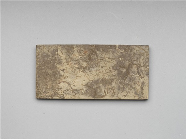 硯與石研(中日雜59)皆石質,硯作長方扁平板狀,硯面平滑,硯背高低不平。全器光素無紋。石研作半球形鈕,其表面陰刻圖案式柿蒂紋,側壁平直,底面呈方形。三隅斜削,一隅傷缺。戰國與漢代的墓葬中(尤其是後者),硯與石研經常共出,應與當時墨塊的特性有關。