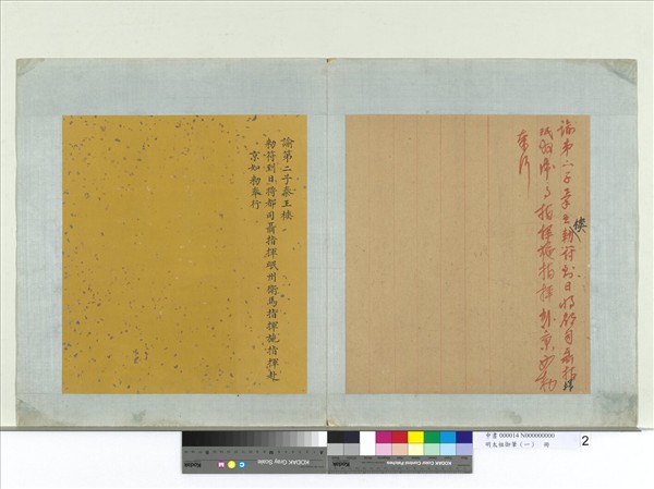 明太祖御筆(一) 冊 諭第二子秦王樉