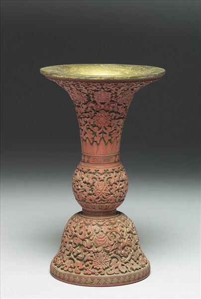 剔紅八寶番蓮紋瓶(五供)