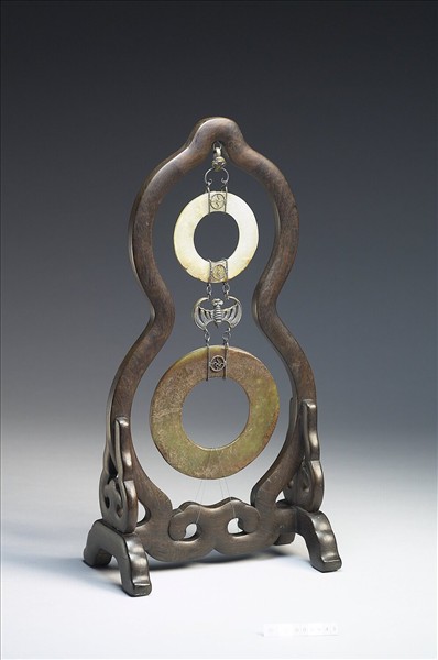 紫檀壺盧式雙玉璧屏