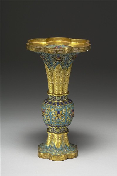 內填琺瑯觚形瓶(五供)