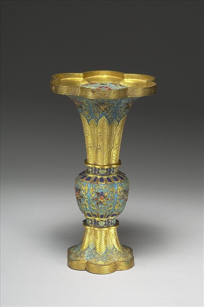 內填琺瑯觚形瓶(五供)