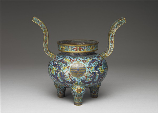 掐絲琺瑯雙龍拱壽香爐(五供)