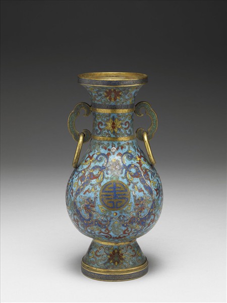 掐絲琺瑯雙龍拱壽瓶(五供)