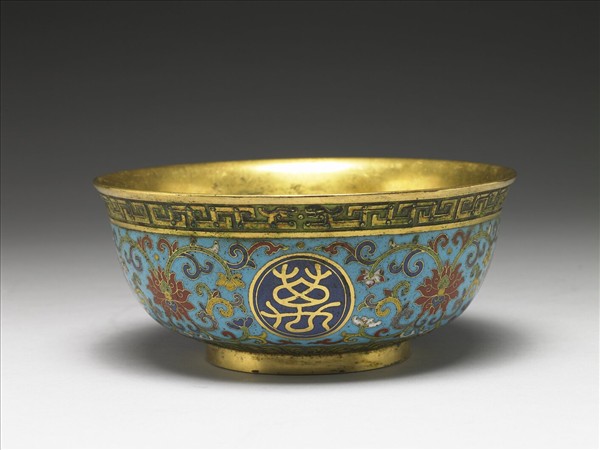 掐絲琺瑯萬壽無疆碗