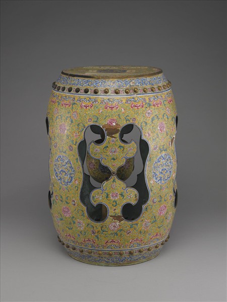 銅胎畫琺瑯黃地花草紋坐墩