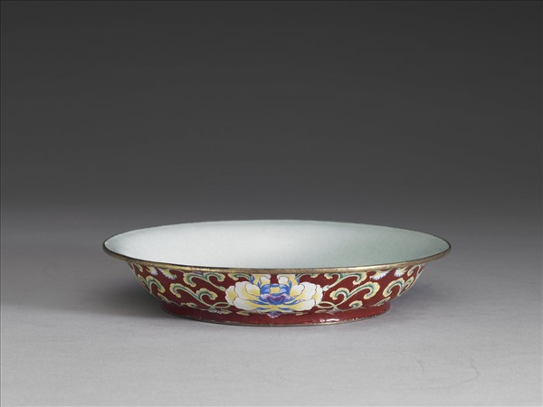 銅胎畫琺瑯紅地花卉紋盤