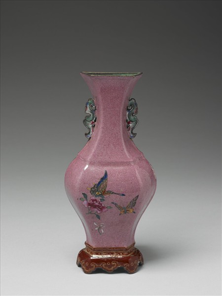 銅胎畫琺瑯紅地花蝶紋轎瓶