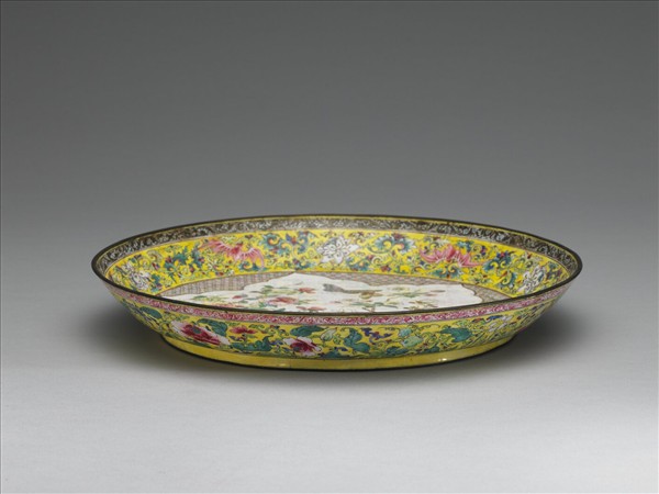 銅胎畫琺瑯黃地開光花卉盤
