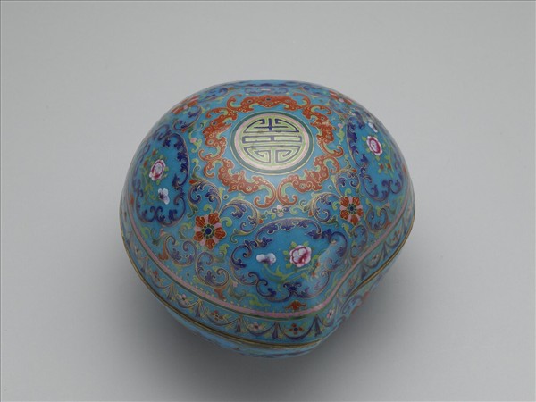 銅胎畫琺瑯桃式五福捧壽盒
