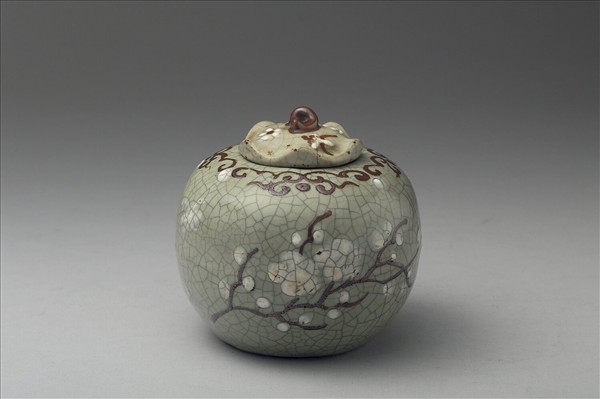 青瓷梅紋蓋罐