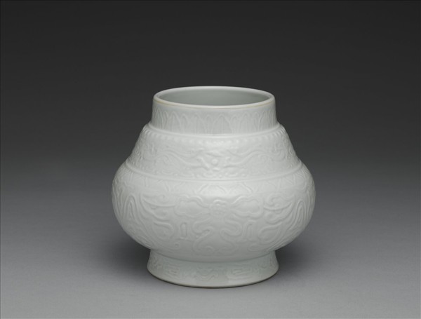 白瓷暗花夔龍罐