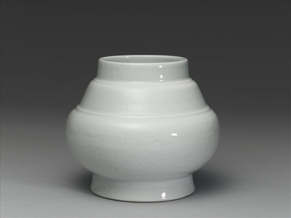 白瓷暗花夔龍罐