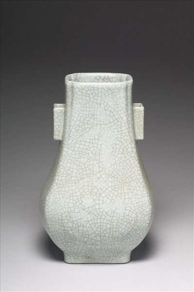 青瓷貫耳杏葉四方瓶