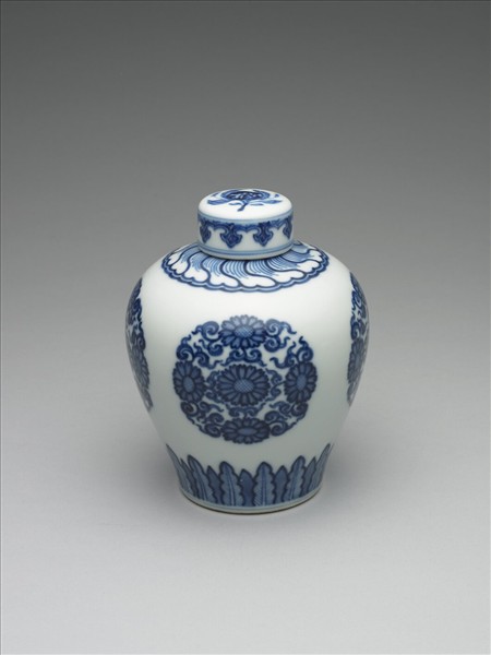 青花菊花紋蓋罐