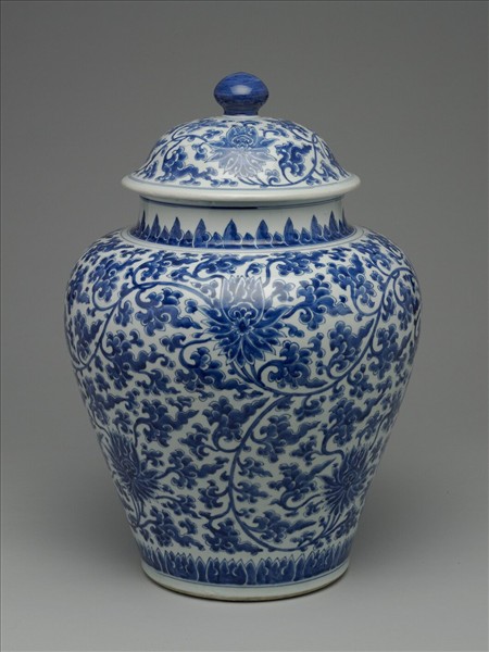 青花番蓮紋蓋罐