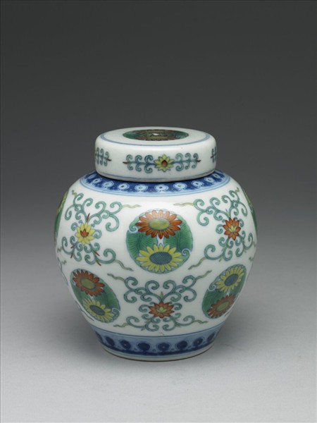 鬥彩團菊紋蓋罐