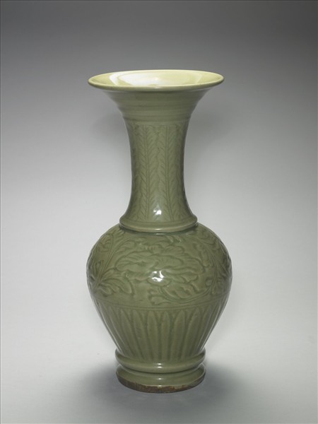 龍泉窯 青瓷劃花牡丹紋鳳尾瓶