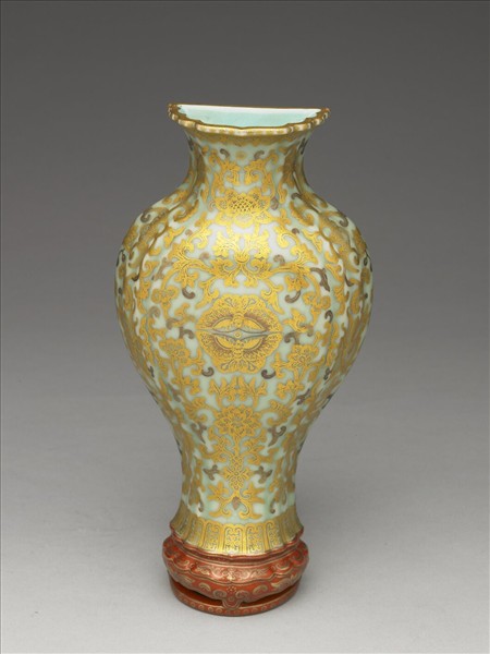 青瓷金彩蝠蝶紋轎瓶