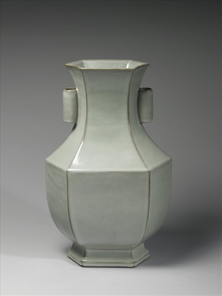 青瓷貫耳六稜瓶