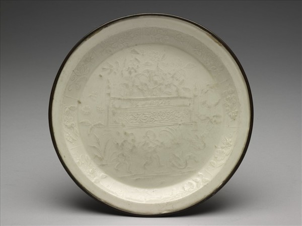 定窯 白瓷印花嬰戲圖折沿盤