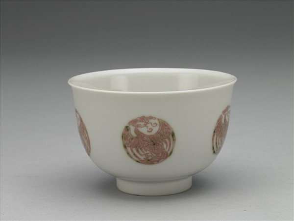 白瓷釉裡紅團鳳紋杯