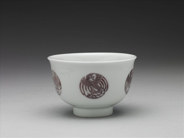 白瓷釉裡紅團鳳紋杯