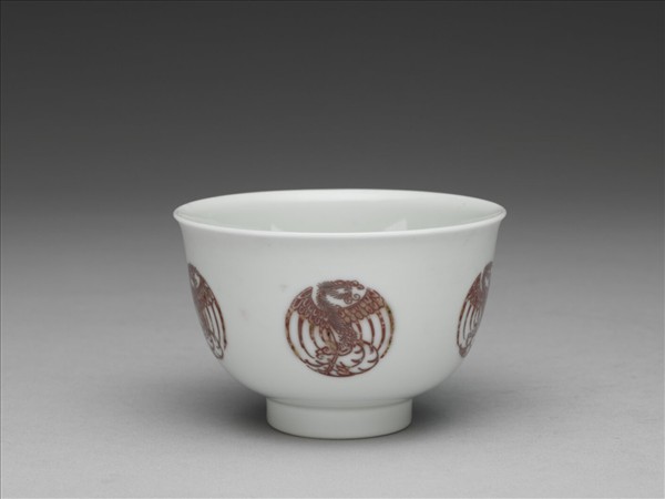 白瓷釉裡紅團鳳紋杯