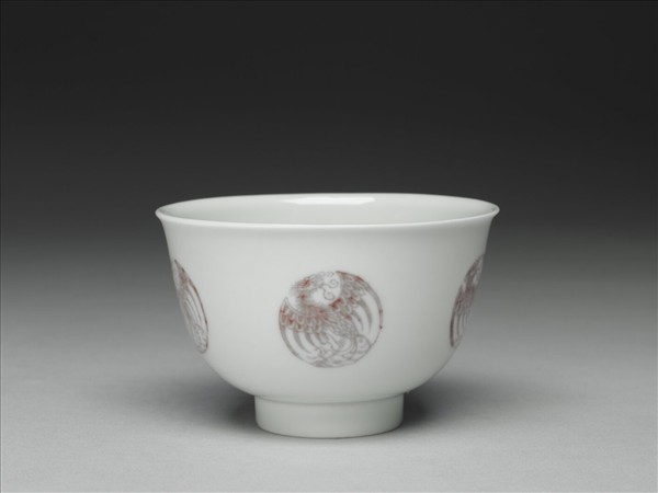 白瓷釉裡紅團鳳紋杯