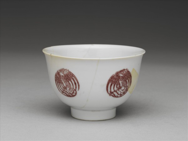 白瓷釉裡紅團鳳紋杯