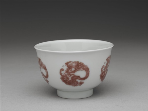 白瓷釉裡紅團龍紋杯
