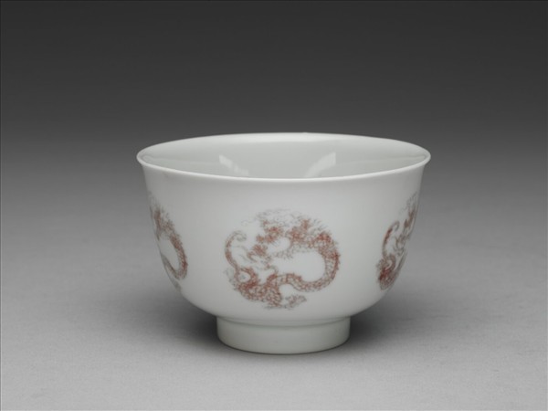 白瓷釉裡紅團龍紋杯
