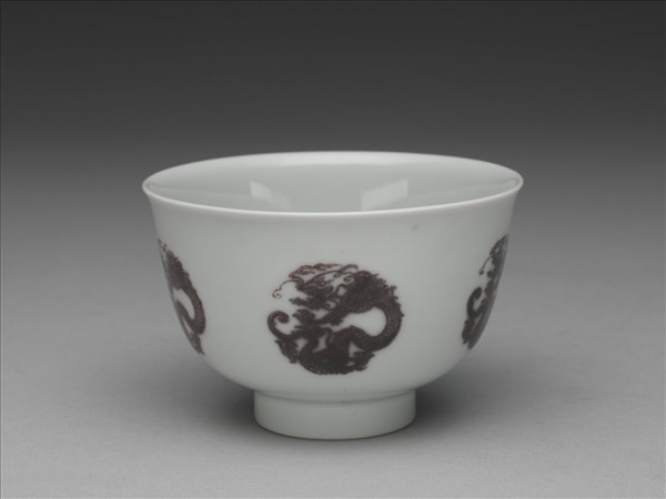 白瓷釉裡紅團龍紋杯