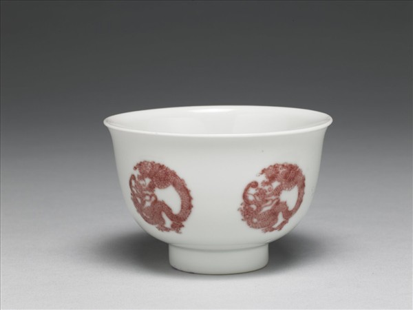 白瓷釉裡紅團龍紋杯