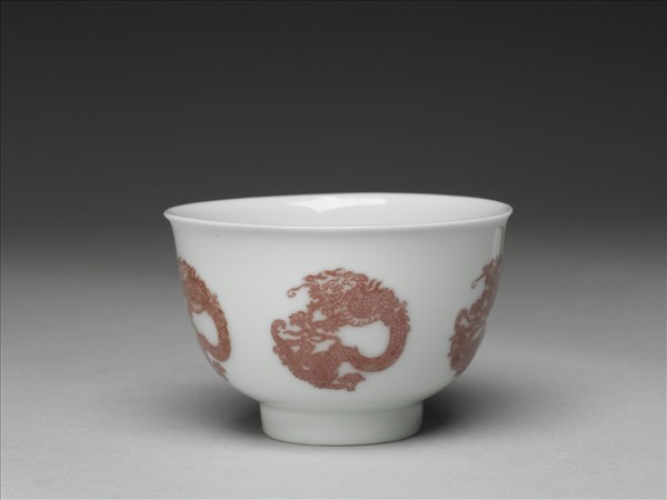 白瓷釉裡紅團龍紋杯