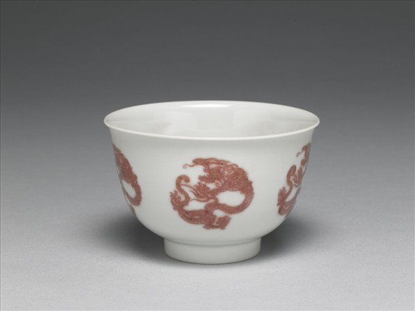 白瓷釉裡紅團龍紋杯