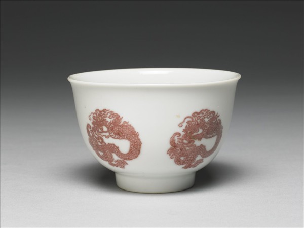 白瓷釉裡紅團龍紋杯