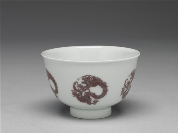 白瓷釉裡紅團龍紋杯