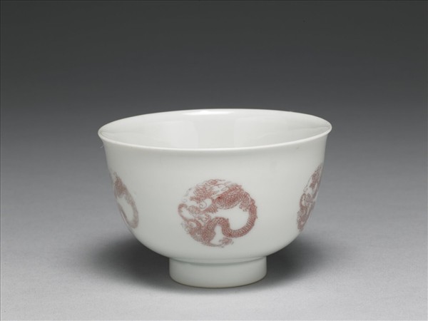 白瓷釉裡紅團龍紋杯