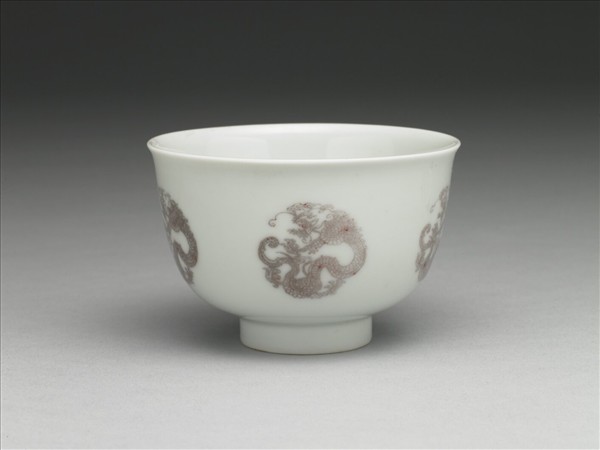 白瓷釉裡紅團龍紋杯