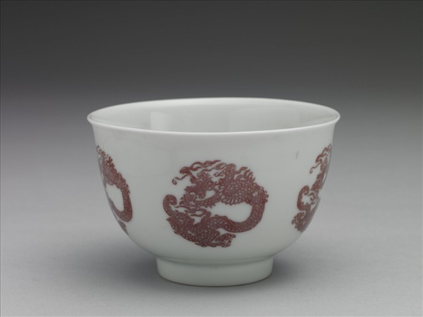 白瓷釉裡紅團龍紋杯