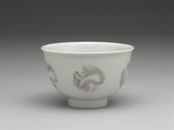 白瓷釉裡紅團龍紋杯