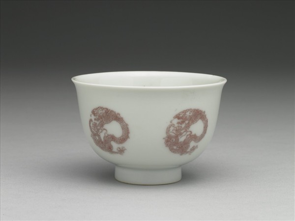 白瓷釉裡紅團龍紋杯